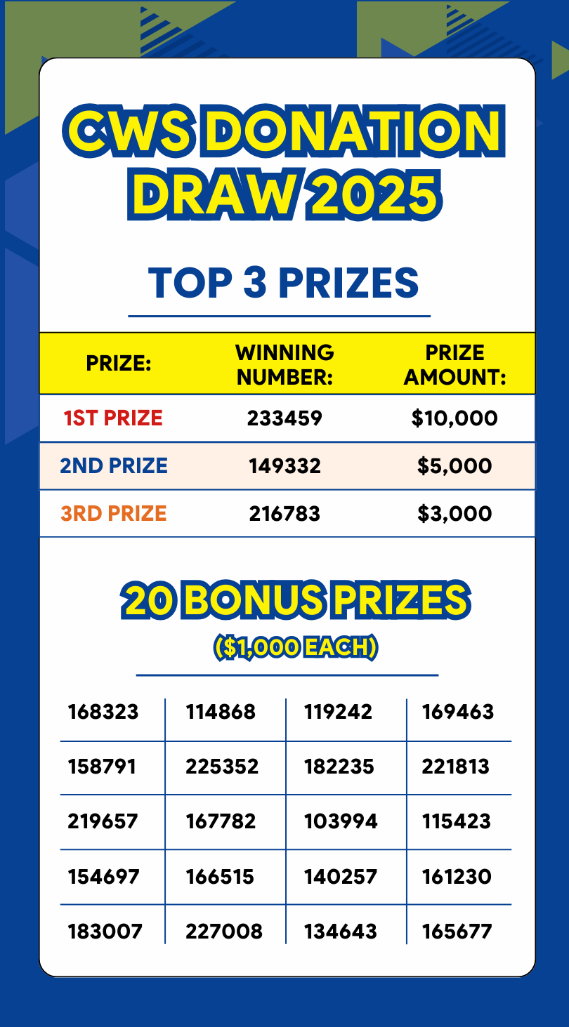 CWS Annual Donation Draw 2025 – Results Announcement!